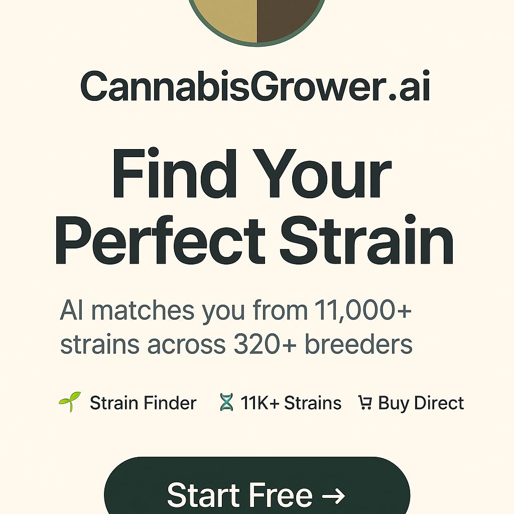 CannabisGrower.ai is an AI-powered cannabis strain finder and database — built on 25 years of real grow data from Grasscity.forum. We help growers find their perfect strain from 11,000+ genetics across 320+ breeders worldwide, with direct links to buy from trusted seed banks.